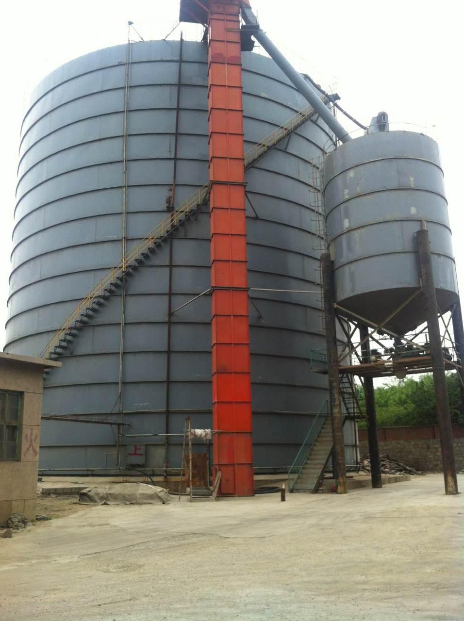 物料入库方式根据各厂不同情况可采用提升机入库、斜槽入库或气力输送管道入库等方式。库顶之间,库顶与提升机框架之间可架设栈桥,以便安装入库物料输送设备。